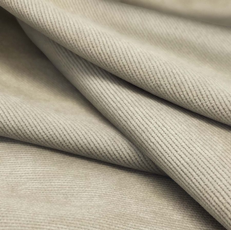 La tela base es la Pana Aterciopelada - Dublin, con una composición de 85% poliéster, 12% poliamida y 3% elastano. Su color liso impreso es marrón claro, con un CMYK de 22 21 36 4. Este color simboliza la seguridad y la estabilidad, además de estar asociado a la naturaleza y la tierra. Combina muy bien con colores cálidos como naranja y amarillo, así como con tonos más oscuros como el verde y el marrón.