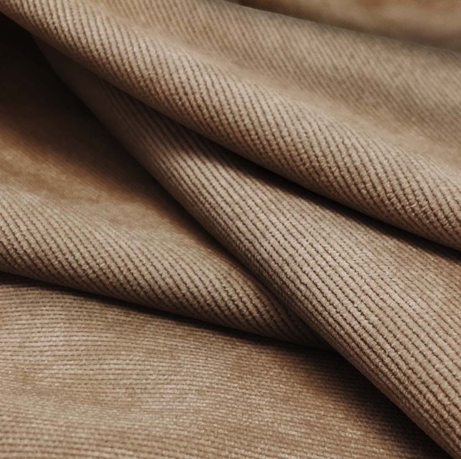 La tela base de este tejido es la Pana Aterciopelada - Dublin, compuesta por un 85% de poliéster, un 12% de poliamida y un 3% de elastano. Su gramaje es de 280 gr/m2 y su ancho de 150 cm. El color liso impreso es el marrón roble con un CMYK de 36 47 54 32. Este color secundario es una mezcla de tonalidades cálidas y terrosas, que transmite una sensación de elegancia y sofisticación. Combina muy bien con tonos beige, dorados y verdes oscuros, creando una paleta de colores muy atractiva.