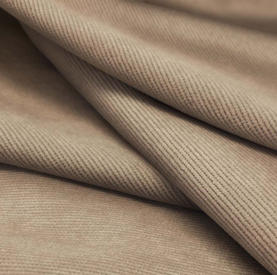 La tela base es la Pana Aterciopelada - Dublin, compuesta por 85% poliéster, 12% poliamida y 3% elastano. El color liso impreso es un Marrón Veronés, con un CMYK de 30 40 48 19. Es un color cálido y acogedor que combina con otros tonos tierra, como el beige y el crema, así como con tonos más oscuros, como el marrón chocolate. La tela está impresa a una sola cara por impresión digital textil, lo que garantiza mayor precisión en el color y diseño.