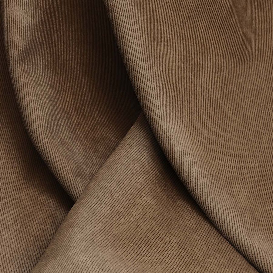 La tela base es una Pana Aterciopelada - Dublin con una composición de 85% Poliéster, 12% Poliamida y 3% Elastano, con un gramaje de 280 gr/m2 y un ancho de 150 cm. El color liso es Marrón Nogal con un CMYK de 43 58 73 56. Este color es una mezcla de marrón oscuro con tonos marrón rojizo, lo que le da un aspecto cálido y acogedor. Combina muy bien con otros tonos tierra, beige y grises suaves.