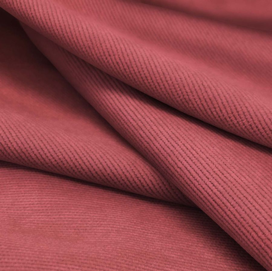 La tela base es la Pana Aterciopelada - Dublin, compuesta por 85% de poliéster, 12% de poliamida y 3% de elastano, con un gramaje de 280 gr/m2 y un ancho de 150 cm. Su color liso impreso es Marrón/Rojo Inglés, que se compone de una mezcla de cian, magenta, amarillo y negro en una proporción de 24,78,55,17. Este color irradia una sensación cálida, atractiva y sofisticada, combinando perfectamente con matices de blanco, negro, gris, beige, amarillo y azul. Es importante tener en cuenta que el tejido está impreso con el color liso a una sola cara por impresión digital textil y no es un tejido tintado.
