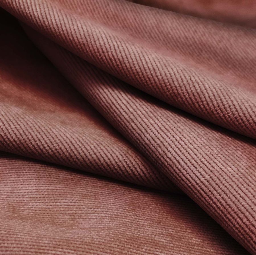La tela base de este tejido es la Pana Aterciopelada - Dublin, compuesta por 85% de poliéster, 12% de poliamida y 3% de elastano con un gramaje de 280 gr/m2 y un ancho de 150 cm. El color liso impreso combina Marrón y Rojo Toscano con un CMYK de 35 68 53 41. Este color secundario simboliza la pasión, el amor y la fuerza. Se combina bien con tonos neutros como beige y blanco, así como con tonos fríos como el azul. Este tejido está impreso con el color liso a una sola cara por impresión digital textil.