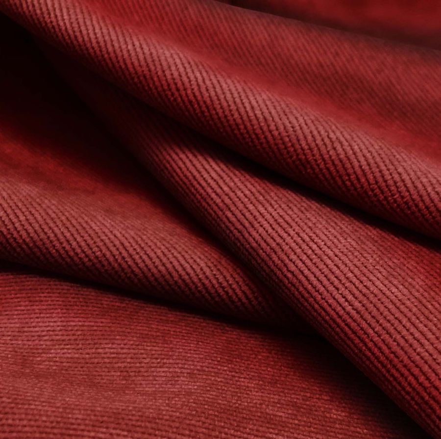 La tela base de la que hablamos es la Pana Aterciopelada - Dublin, con una composición de 85% poliéster, 12% poliamida y 3% elastano. Su gramaje es de 280 gr/m2, con un ancho de 150 cm. El color liso impreso es marrón con tonalidades de sangre roja, con un CMYK de 34 100 90 54. Este color se caracteriza por su fuerza, intensidad y profundidad, siendo un color que atrae la atención y agrega dramatismo al tejido. Combina particularmente bien con tonos claros y naturales como el beige, crema y blanco, y con tonalidades más oscuras como el negro y el gris.
