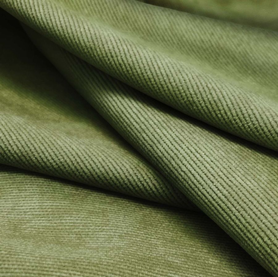 La tela base es la Pana Aterciopelada - Dublin, compuesta por 85% poliéster, 12% poliamida y 3% elastano, con un gramaje de 280 gr/m2 y un ancho de 150 cm. El color liso impreso es una combinación de marrón y verde salvia, con un CMYK de 59 37 75 26. El color secundario, el verde salvia, representa la naturaleza, la frescura y la tranquilidad. Combina especialmente bien con tonos tierra o dorados para crear un ambiente cálido y sereno. La tela está impresa con el color liso a una sola cara por impresión digital textil.