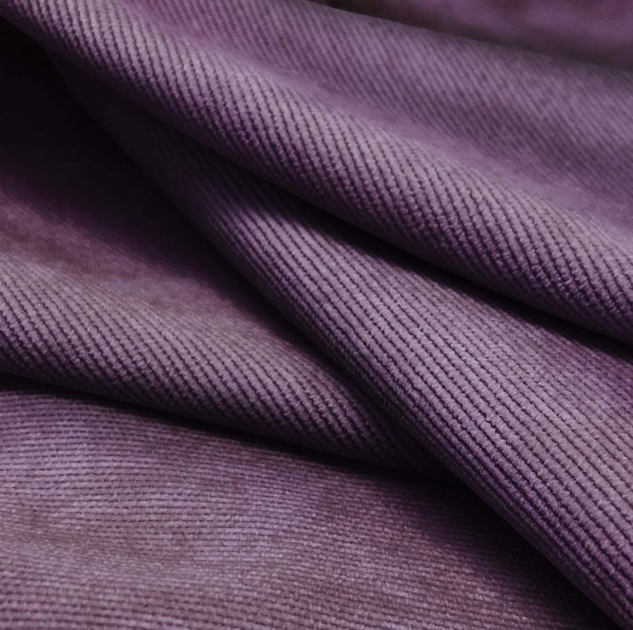 La tela base es la Pana Aterciopelada - Dublin, con composición de 85% poliéster, 12% poliamida y 3% elastano, con un gramaje de 280 gr/m2 y ancho de 150 cm. El color liso impreso es Morado Heliotropo Antiguo con un CMYK de 69 78 36 30. Este color se caracteriza por ser un tono intenso y brillante que combina muy bien con colores neutros como el blanco y el negro, así como con otros tonos afines como el rosa y el azul claro.