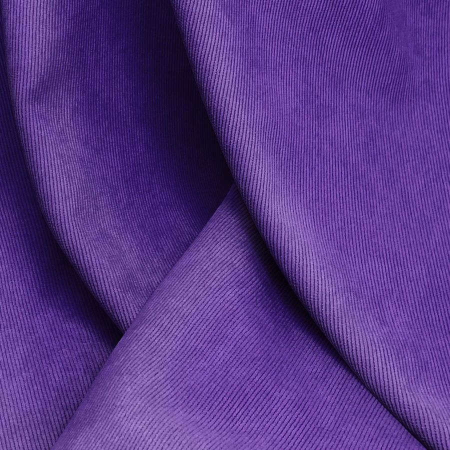 La tela base, Pana Aterciopelada - Dublin, es una pana compuesta por 85% de poliéster, 12% de poliamida y 3% de elastano, y tiene un gramaje de 280 gr/m2. El color liso impreso es una mezcla de morado, violeta y azul, con una combinación de tinta CMYK de 88 99 3 1. El segundo color, una mezcla de tonos cálidos y fríos, transmite una sensación de tranquilidad y misterio. Combina especialmente bien con tonos tierra, beige y grises, y añade un toque sofisticado a cualquier diseño. Es importante mencionar que el tejido está impreso con el color liso a una sola cara por impresión digital textil, lo que le da una nitidez y una precisión de detalles impresionantes.