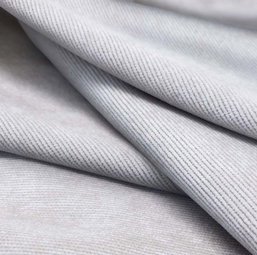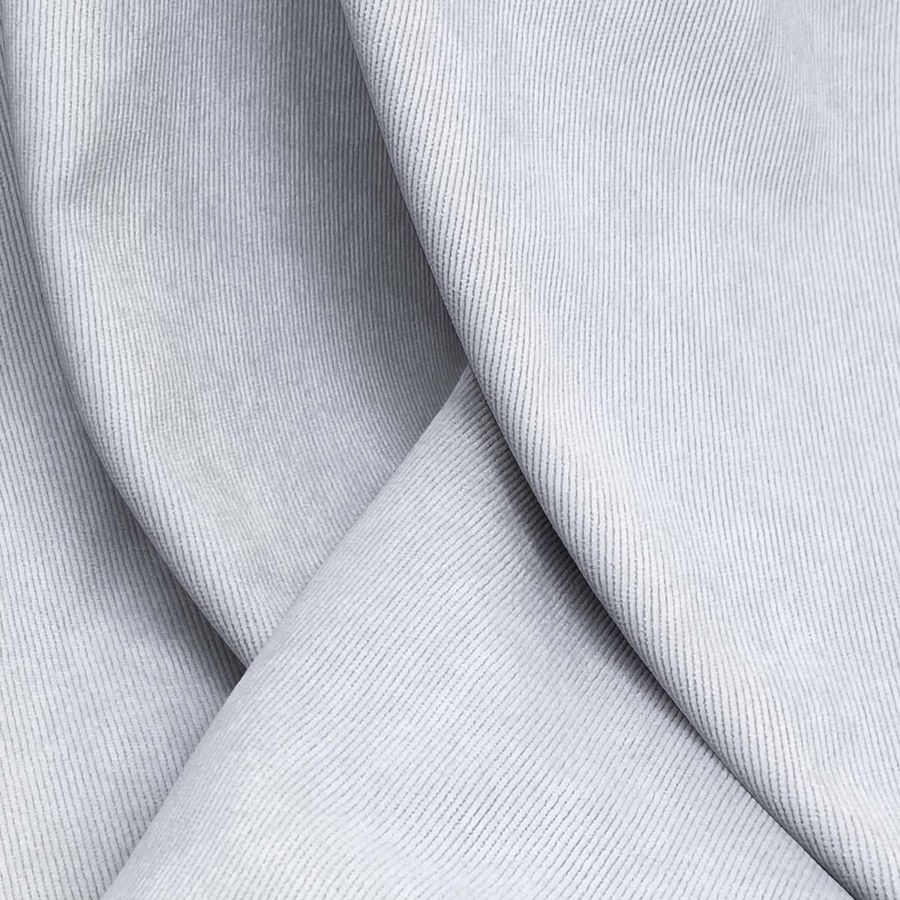 La tela base es una pana aterciopelada de composición 85% de poliéster, 12% de poliamida y un 3% de elastano con un gramaje de 280 gr/m2 y un ancho de 150 cm. El color liso impreso en la tela es un tono suave de morado lavanda, con un CMYK de 11 9 0 0, que se combina perfectamente con tonos pastel y tonos neutros como el beige o el gris. Cabe destacar que la tela está impresa con el color liso a una sola cara por impresión digital textil, no es un tejido tintado, sino que se imprime directamente en la superficie de la tela.