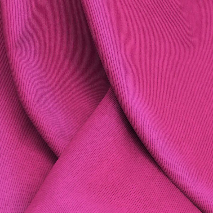 La tela base de nuestra tela Pana Aterciopelada - Dublin es una pana compuesta por 85% poliéster, 12% poliamida y 3% elastano, con un gramaje de 280 gr/m2 y con una anchura de 150 cm. El color liso impreso en esta tela es un tono morado-magenta con un CMYK de 15 90 21 2, lo que le da una impresión visual brillante y atrayente. La combinación de tonalidades de este color pueden hacer rememorar a la tranquilidad de una tarde de primavera, con un cielo magenta y tonos pastel en las flores de los campos.