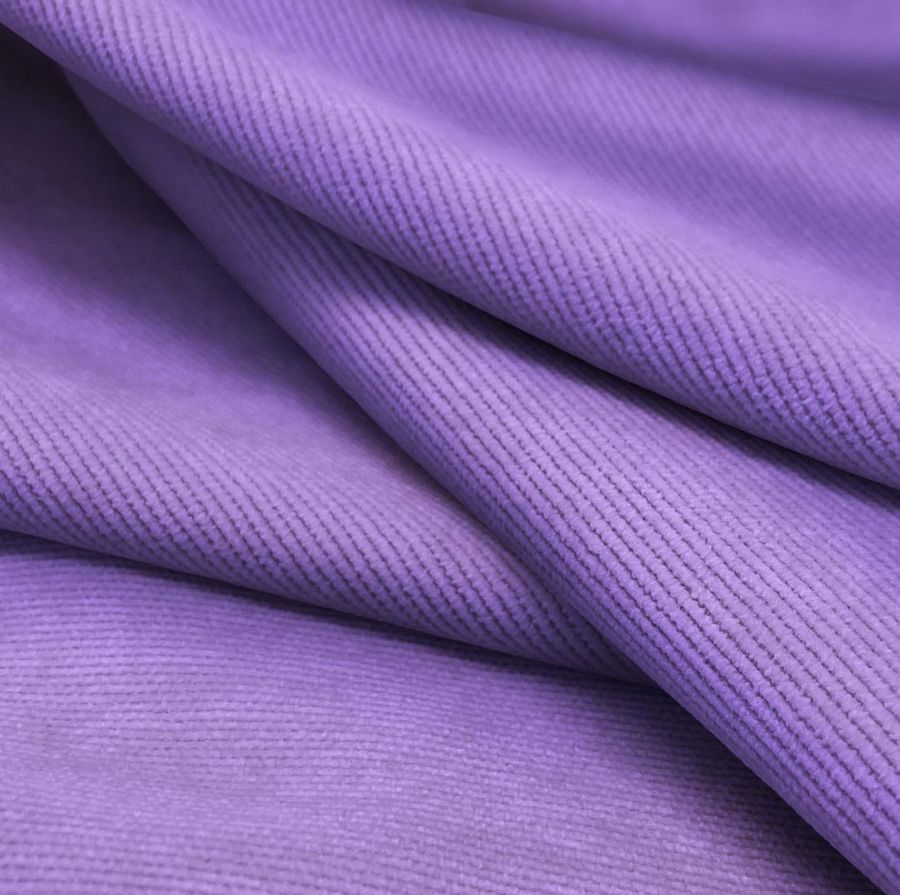 La tela base de nuestra tela Pana Aterciopelada - Dublin está compuesta por un 85% de poliéster, un 12% de poliamida y un 3% de elastano. Además, su gramaje es de 280 gr/m2 y su ancho alcanza los 150 cm. Se trata de una tela con una textura suave y visualmente brillante que se imprime con un color liso en una sola cara por medio de la técnica de sublimación de poliéster. El color liso de nuestra tela es un morado-púrpura medio con un CMYK de 58 60 0 0. Este color secundario destaca por su elegancia y sofisticación, combinando muy bien con acentos de colores claros, como el amarillo pálido, y oscuros, como el azul oscuro.