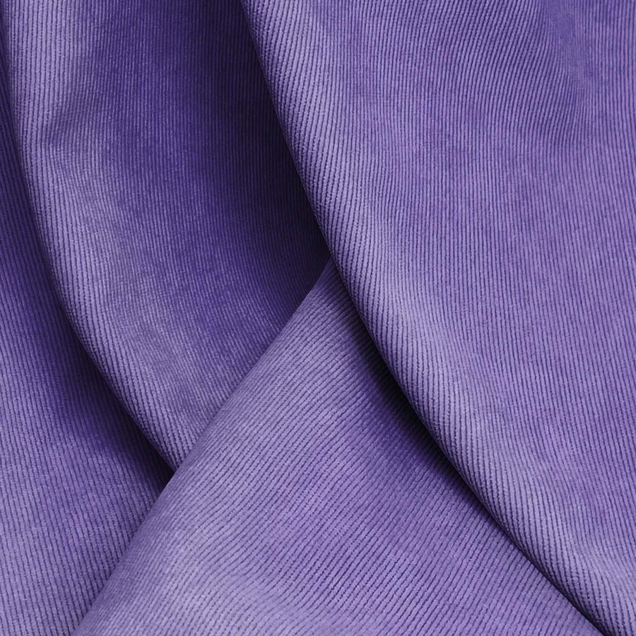 La tela base es la Pana Aterciopelada - Dublin, con una composición de 85% poliéster, 12% poliamida y 3% elastano, un peso de 280 g/m2 y un ancho de 150 cm. El color liso impreso en la tela base es un morado ultravioleta, con un CMYK de 72 73 11 1, y se imprime a una sola cara por impresión digital textil.