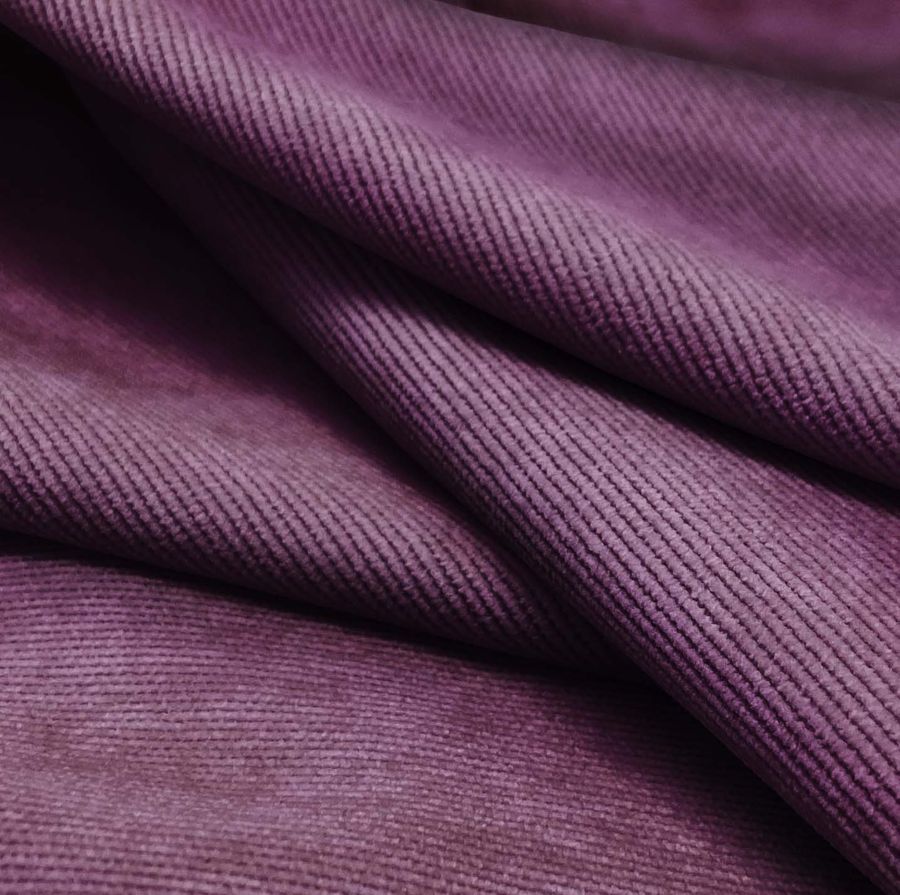 La tela base es la Pana Aterciopelada - Dublin, cuyo color liso impreso es de un tono Morado-Violeta Japonés con un CMYK de 66 84 35 32. Este color es una mezcla de azul, rojo y un toque de amarillo, que genera una sensación de calma, serenidad y espiritualidad. Combinando tonos claros, como el rosa o el verde oliva, se puede conseguir un ambiente más cálido y agradable.