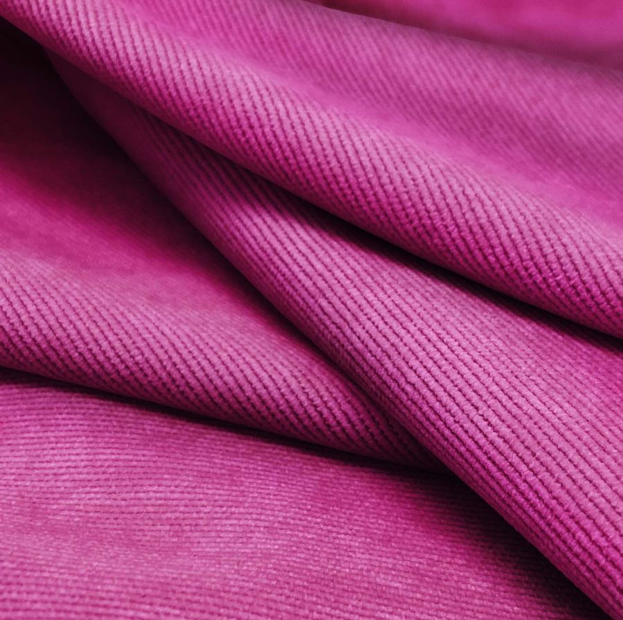 La Pana Aterciopelada - Dublin es una tela de 280 gr/m2 de gramaje, compuesta por un 85% de poliéster, 12% de poliamida y un 3% de elastano, con un ancho de 150 cm. Su color liso impreso con una tinta CMYK de 28 90 6 0, se describe como un morado-violeta rojizo medio. Este color combina particularmente bien con tonos beige, grises y cremas.