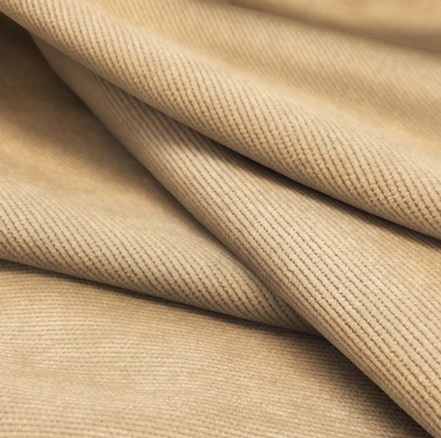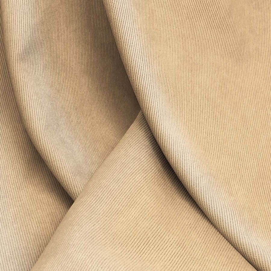 La tela base es Pana Aterciopelada - Dublin, compuesta por 85% poliéster, 12% poliamida, 3% elastano, con un gramaje de 280 gr/m2 y un ancho de 150 cm. El color liso impreso es Naranja Calabaza Suave, cuyo CMYK es 7 30 50 0. Este tono evoca la calidez y la vitalidad de la naturaleza, y se combina perfectamente con otros tonos análogos como el amarillo y el rojo, o con tonos complementarios como el azul y el morado.