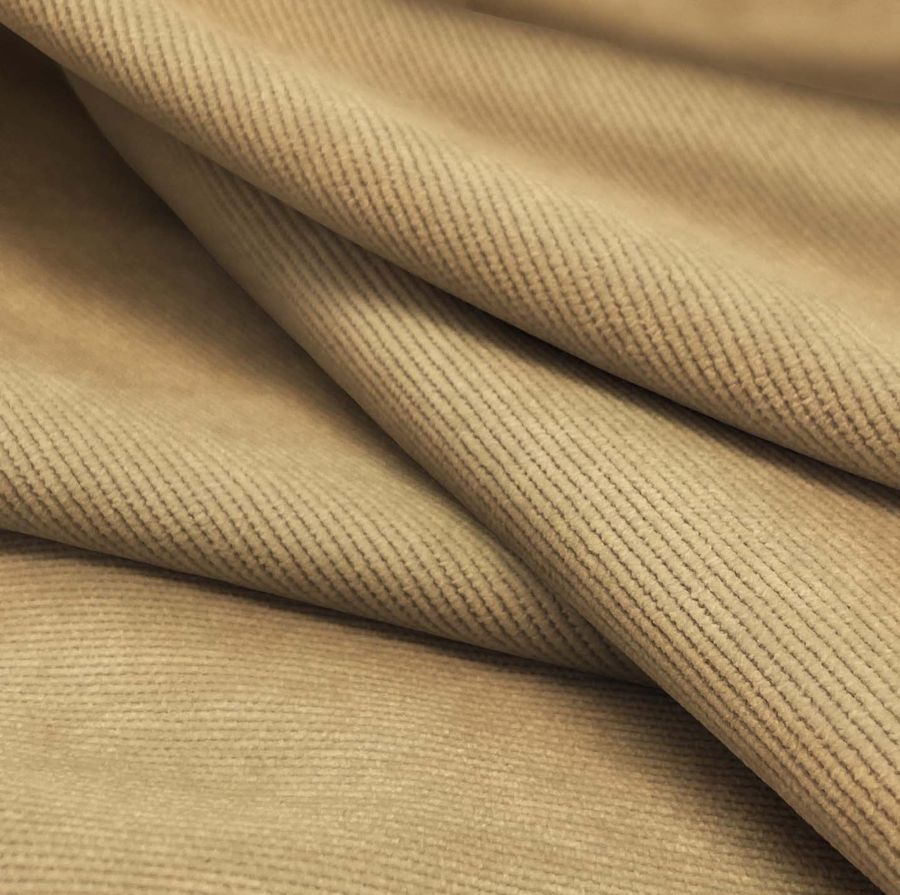 La tela base es la Pana Aterciopelada - Dublin, compuesta por 85% poliéster, 12% poliamida y 3% elastano, con un gramaje de 280 gr/m2 y un ancho de 150 cm. Su color liso impreso se compone de una mezcla de naranja y camel, con un CMYK de 22 37 60 10. Este color secundario combina a la perfección con tonos tierra, verdes y grises para crear un ambiente cálido y acogedor en la decoración del hogar.