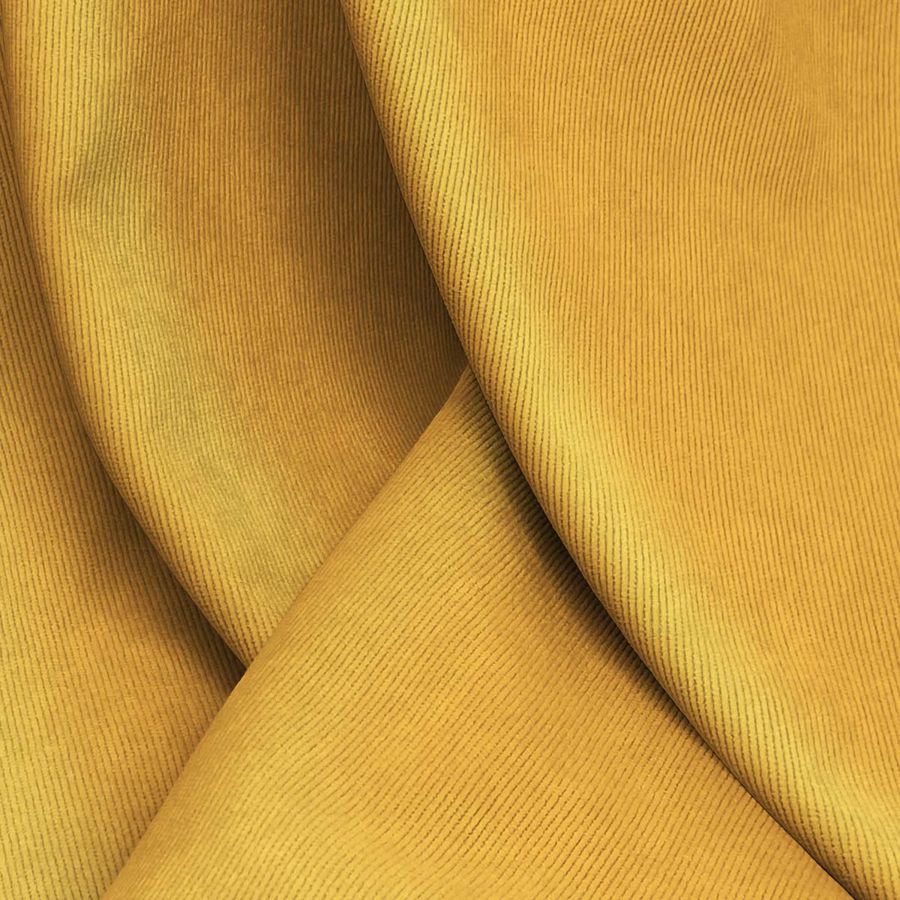 La tela base de este tejido es una Pana Aterciopelada - Dublin compuesta por 85% Poliéster, 12% Poliamida y 3% Elastano, con un gramaje de 280 gr/m2 y un ancho de 150 cm. Su color liso es Naranja Cadmio; su CMYK es 7 44 83 0. Este color transmite una sensación de vitalidad y energía, atrayendo la atención sin ser excesivamente brillante. Combina bien con otros tonos cálidos como amarillos y rojos, además de con tonos tierra y marrones.