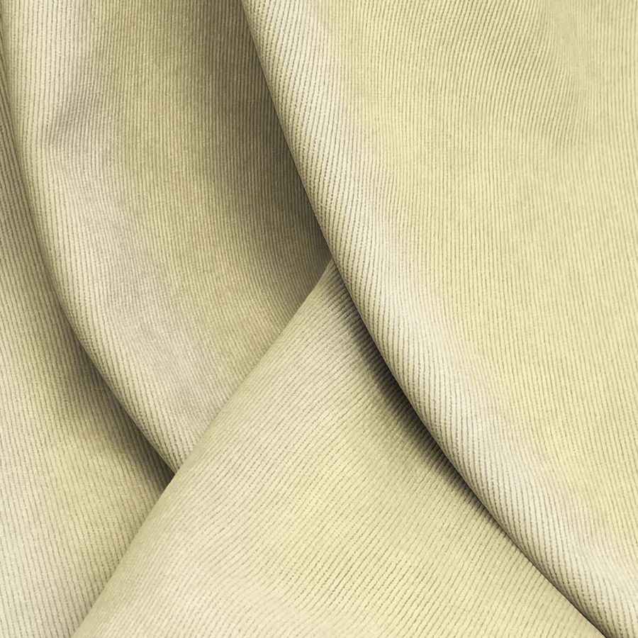 La tela base es una Pana Aterciopelada - Dublin, con una composición de 85% POLIÉSTER, 12% POLIAMIDA y 3% ELASTANO. El gramaje es de 280 gr/m2 y el ancho de la tela es de 150 cm. El color liso impreso es una combinación de Amarillo y Albumen con un CMYK de 4 8 43 0. Este color secundario es suave y brillante, teniendo una sensación cálida y acogedora al mismo tiempo. Combinado con otros colores como el rojo o el azul, puede complementar una gama cromática rica y contrastante.