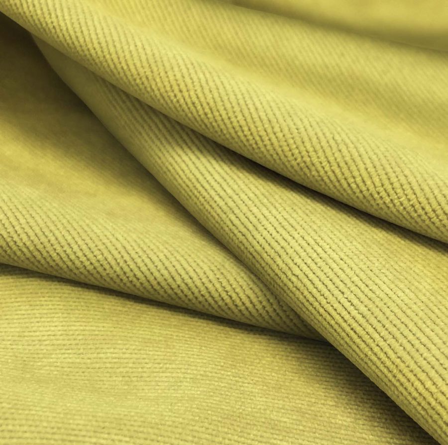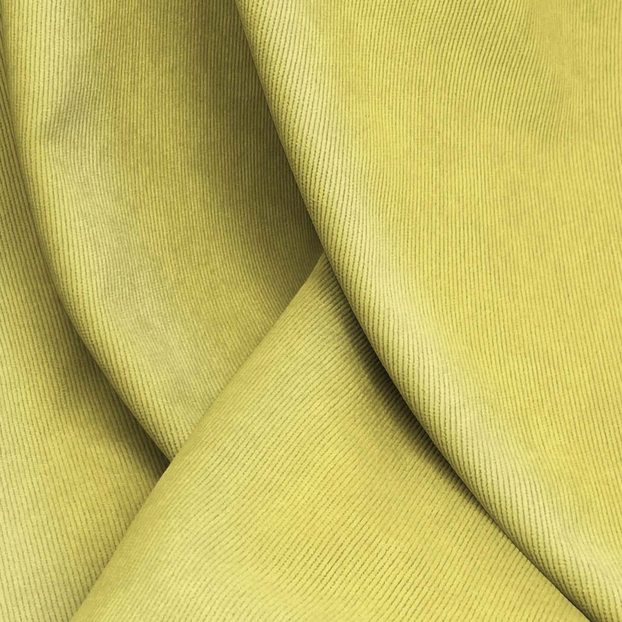 La tela base es la Pana Aterciopelada - Dublin, con una composición de 85% poliéster, 12% poliamida y 3% elastano. Su color liso impreso es un amarillo ámbar con un CMYK de 15 12 72 1. Este color es cálido y vibrante, asociado con la energía, la creatividad y el sol. Combina particularmente bien con colores neutros como el gris y el blanco, y también con tonos marrones y verdes.