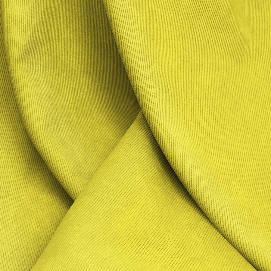 La Pana Aterciopelada - Dublin es una tela de pana compuesta por un 85% de poliéster, un 12% de poliamida y un 3% de elastano con un gramaje de 280 gr/m2 y una anchura de 150 cm. El color liso impreso en esta tela es un Amarillo Azufre de CMYK 10 6 84 0. El color es cálido y brillante, evocando el sol y las frutas. Combina bien con tonos azules, rojos y blancos. Cabe destacar que la tela base está impresa con el color liso a una sola cara por impresión digital textil, lo que significa que no es un tejido tintado sino impreso.