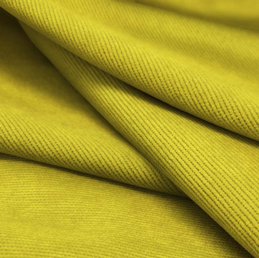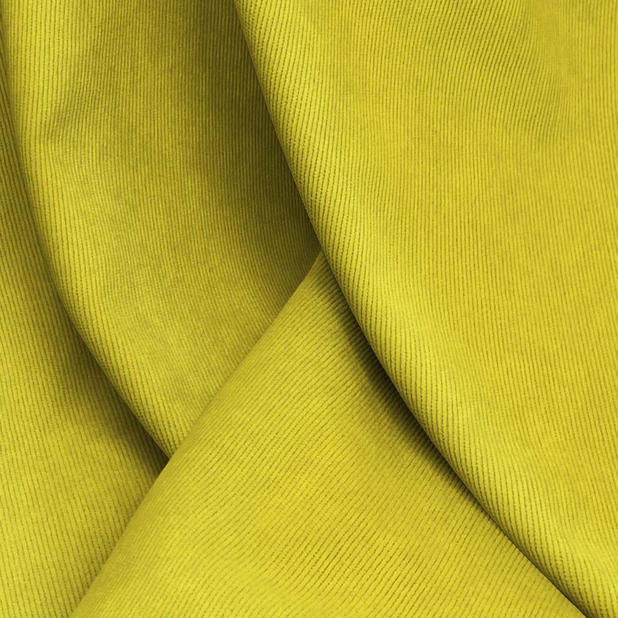 La tela base es de Pana Aterciopelada - Dublin, compuesta por 85% poliéster, 12% poliamida y 3% elastano, con un gramaje de 280 gr/m2 y ancho de 150 cm. El color liso impreso es Amarillo Bambú, con CMYK 22 19 91 3, destacando por su tonalidad cálida y natural. Este color evoque la naturaleza, la calma y la relajación. Combina especialmente bien con verde, azul claro y marrón.