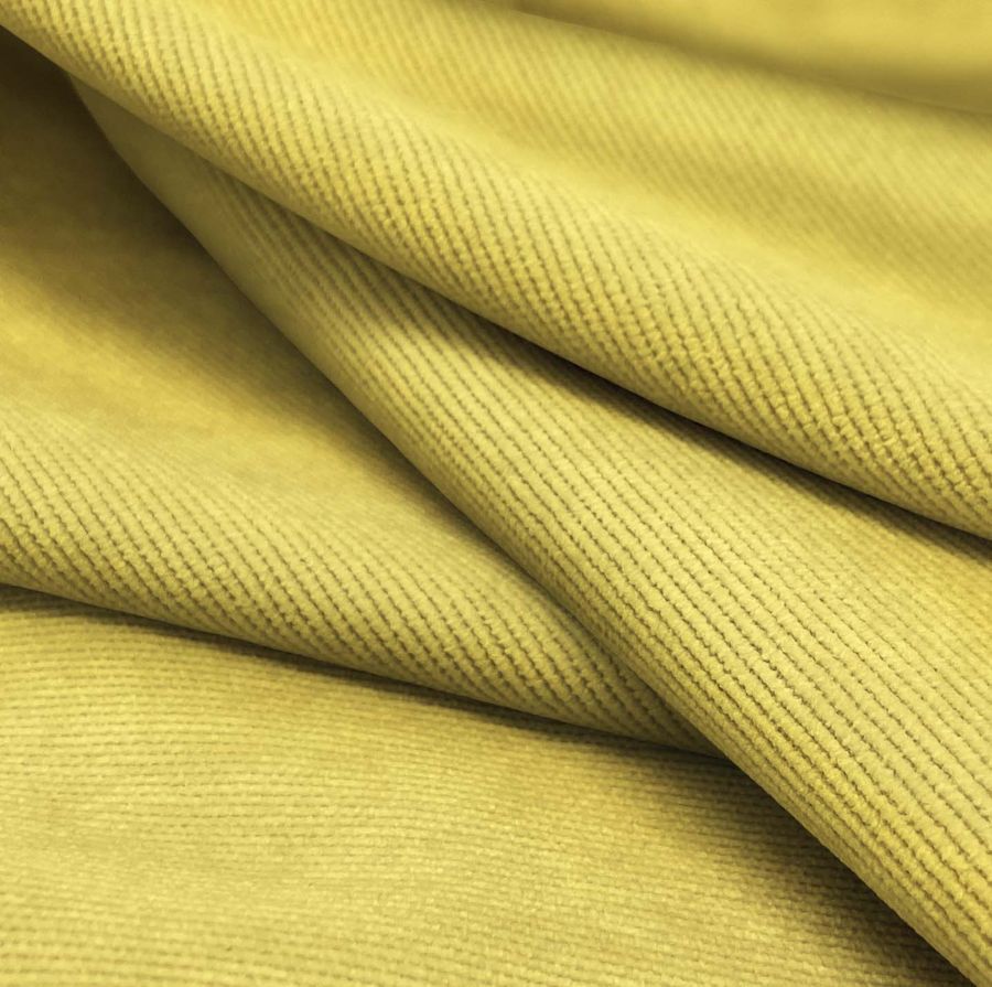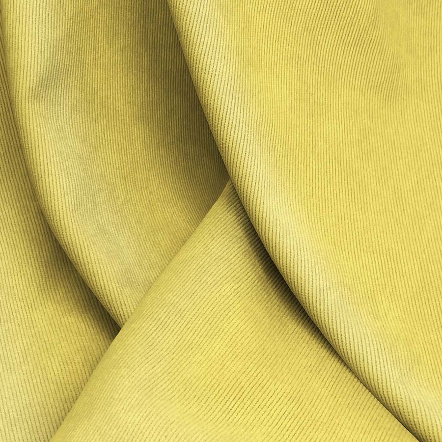Entre las características generales del tejido, destaca su suavidad al tacto, lo que la hace confortable durante su uso. A su vez, el tono amarillo intenso añade un toque vibrante y cálido a la prenda. En cuanto a los atributos de la tela base, se puede utilizar para decoración, tapizado de muebles como sillas, sillones o sofás. Asimismo, la pana aterciopelada también se puede utilizar en prendas de vestir como sobrecamisas, chaquetas, blazers, cazadoras, camisas y pantalones, así como también en accesorios como bolsos o mochilas.