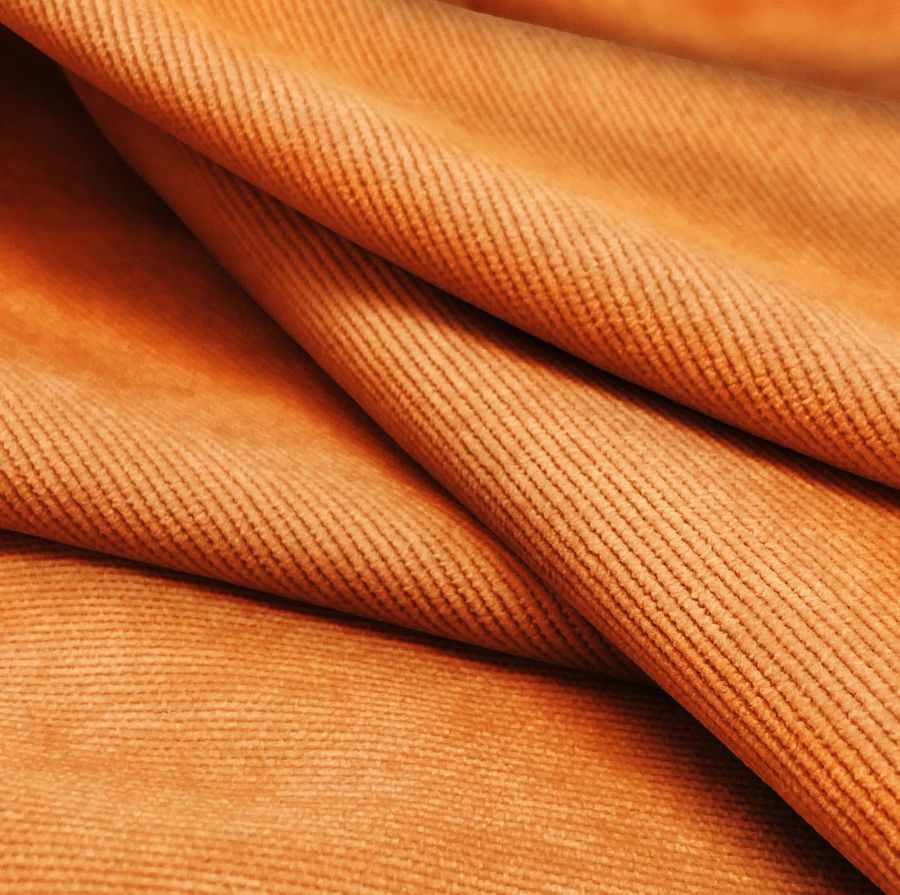 La tela base de este tejido es una suave y aterciopelada Pana Dublin compuesta por 85% poliéster, 12% poliamida y 3% elastano, con un gramaje de 280gr/m2 y un ancho de 150cm. El color liso impreso es un vibrante Amarillo Indio con un CMYK de 0 65 82 0, que simboliza la energía y la vitalidad. Este color secundario combina especialmente con colores fríos como el azul, el verde y el violeta, y crea efectos armónicos y luminosos con colores más cálidos como el naranja y el rojo.