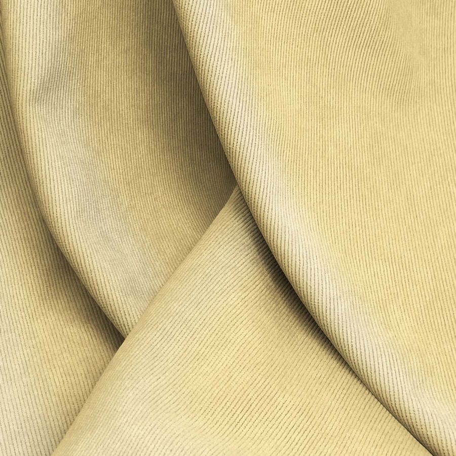 La tela base de la pana aterciopelada - Dublin está compuesta por 85% poliéster, 12% poliamida y 3% elastano, tiene un gramaje de 280 gr/m2 y un ancho de 150 cm. Su color liso impreso en amarillo miel se compone de las tintas de cian 0, magenta 16, amarillo 53 y negro 0, con un CMYK de 0 16 53 0. Este tono simboliza la dulzura de la miel y ofrece una apariencia visual brillante y suave al tacto.