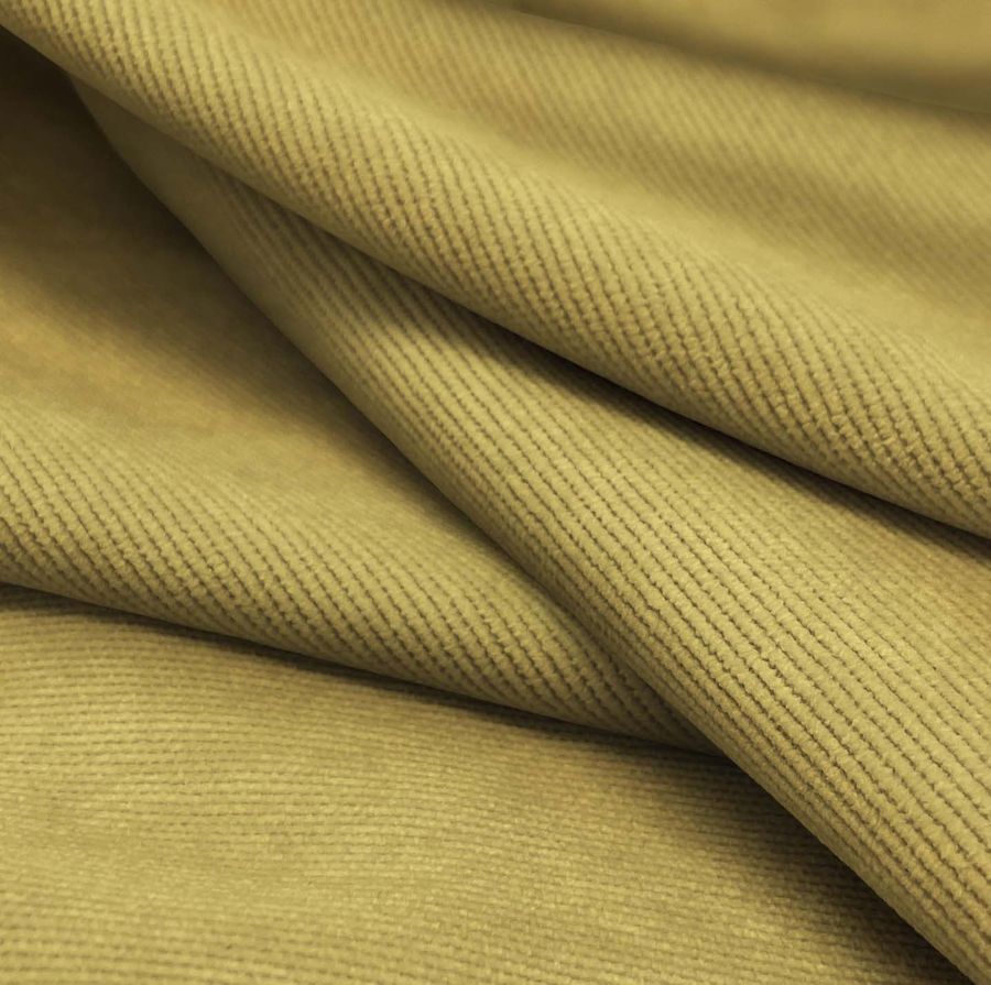 La tela base es la Pana Aterciopelada - Dublin, compuesta por 85% POLIÉSTER, 12% POLIAMIDA y 3% ELASTANO y con un gramaje de 280 gr/m2. El color liso impreso es Amarillo Oro, con un CMYK de 27 32 73 12. Este color simboliza el éxito y la prosperidad, y técnicamente es un color cálido y brillante que se combina bien con tonos tierra y marrones. Es importante destacar que la tela está impresa con el color liso a una sola cara por impresión digital textil.