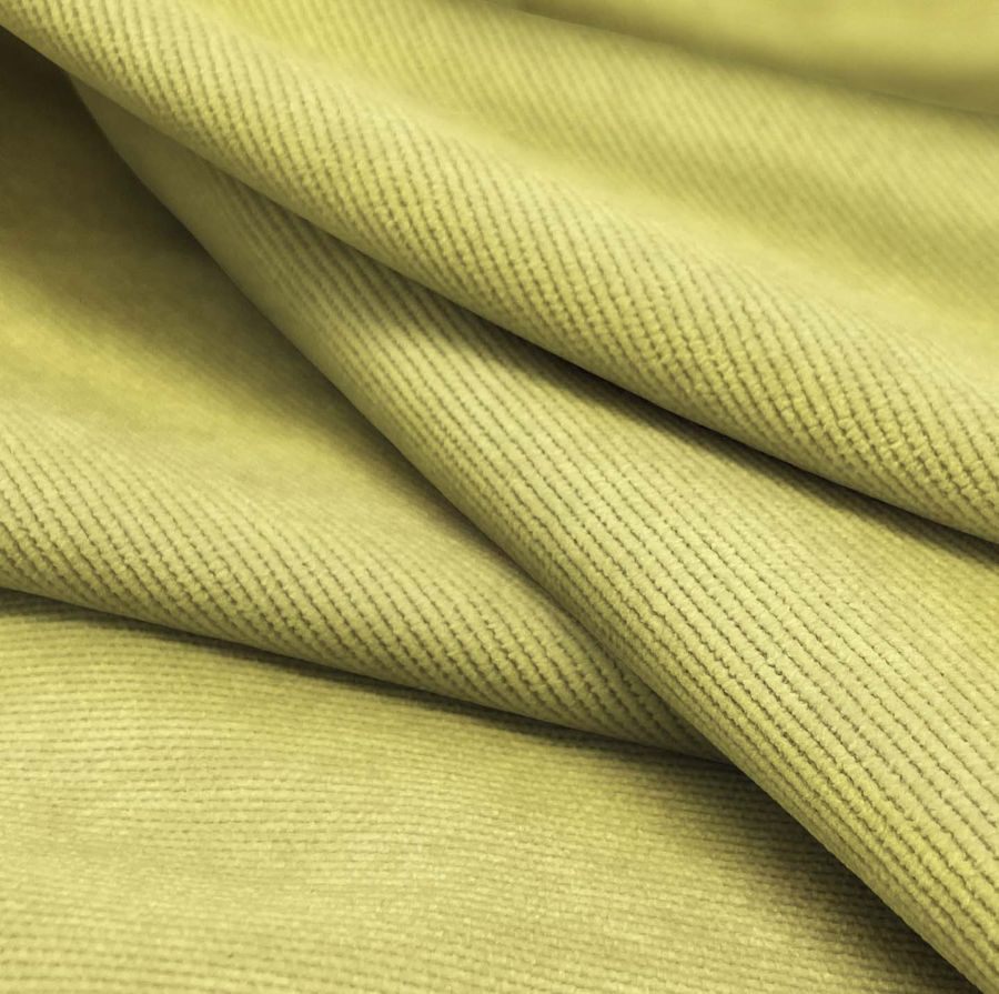 La tela base es una Pana Aterciopelada - Dublin con composición de 85% poliéster, 12% poliamida y 3% elastano, con un peso de 280 gr/m2 y una anchura de 150 cm. El color liso impreso es un Amarillo Paja, con un CMYK de 15 8 66 0. Este color combina perfectamente con tonos marrones, beige y grises.