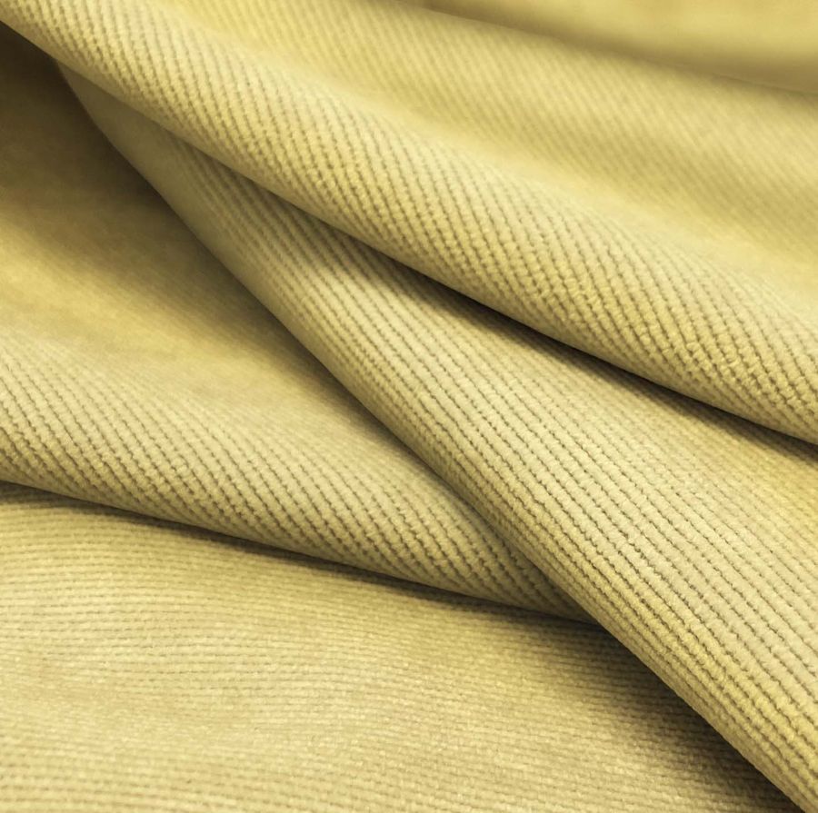 La tela base de este tejido es la Pana Aterciopelada - Dublin, compuesta por 85% poliéster, 12% poliamida y 3% elastano, con un gramaje de 280 gr/m2 y un ancho de 150cm. El color liso impreso es Amarillo Tigre, con un CMYK de 0 13 59 0, lo que refleja una tonalidad cálida y brillante. Este color secundario combina especialmente bien con tonalidades neutras y tierra, como marrones y beiges. Cabe mencionar que el tejido está impreso con el color liso a una sola cara por impresión digital textil.