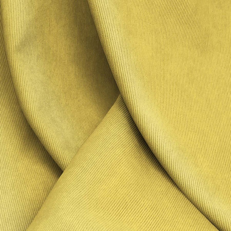 La tela base de este tejido es la Pana Aterciopelada - Dublin, compuesta por un 85% de poliéster, un 12% de poliamida y un 3% de elastano, lo que le aporta su suave textura y brillo visual. El color liso impreso en esta tela es una combinación de amarillo uva, con un CMYK de 11 21 75 1, lo que le da un carácter único y simbólico a este tejido. Este color secundario evoca sentimientos de calidez, tranquilidad y sofisticación, y combina perfectamente con otros tonos claros y oscuros, como los marrones, grises, beiges, verdes y azules.