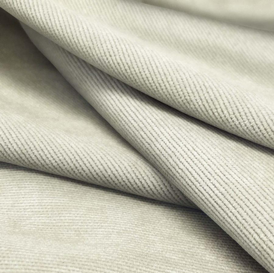 La tela base de este tejido es la Pana Aterciopelada - Dublin, una tela compuesta por un 85% de poliéster, un 12% de poliamida y un 3% de elastano, con un peso de 280 gr/m2 y un ancho de 150 cm. El color liso impreso tiene un tono blanco hueso, con un contenido de tinta cian de 6, magenta de 1, amarillo de 19 y negro de 0, formando un CMYK de 6 1 19 0. Este color secundario es suave y delicado, con un brillo visual que lo hace destacar. Combina especialmente bien con tonos tierra y neutros, como el marrón, creando un ambiente cálido y acogedor.