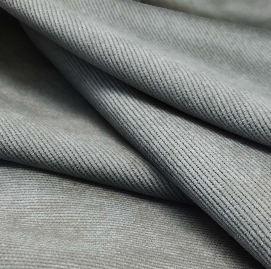 La tela base de este tejido es la Pana Aterciopelada - Dublin, compuesta de un 85% de poliéster, un 12% de poliamida y un 3% de elastano, con un gramaje de 280 gr/m2 y un ancho de 150 cm. El color liso impreso en la tela es un Gris Cadete Maerz-Paul con un CMYK de 51 37 35 16. Este tono se presenta como un gris oscuro que insinúa un toque verdoso. Se combina de forma particular con blanco, negro y tonos tierra.