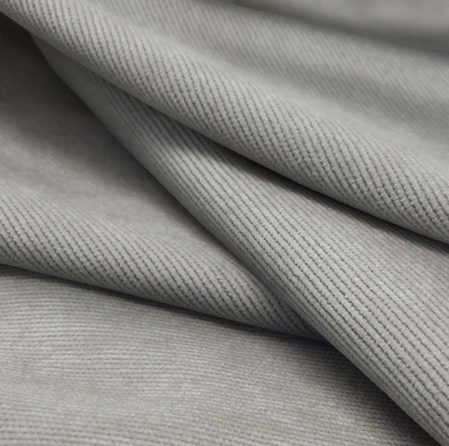 La tela base es la Pana Aterciopelada - Dublin, de composición 85% POLIÉSTER, 12% POLIAMIDA, 3% ELASTANO. El color liso impreso es Gris Español, con un CMYK de 41 32 33 11. Este color se caracteriza por ser un gris azulado, ideal para crear ambientes serenos y sofisticados. Combina con colores fríos como el blanco y el negro, además de con tonalidades verdes y azules.