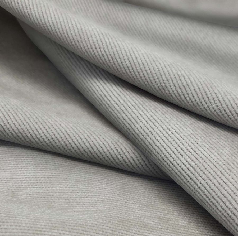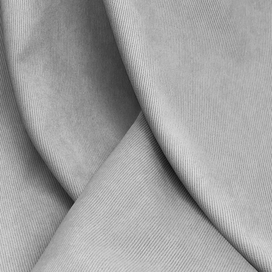 La tela base de este tejido es una Pana Aterciopelada - Dublin, compuesta por un 85% de poliéster, un 12% de poliamida y un 3% de elastano, con un gramaje de 280 gr/m2 y un ancho de 150 cm. El color liso impreso es un Gris Oscuro Medio con un contenido de cyan del 36%, magenta del 28%, amarillo del 28% y negro del 7%. Este color se presenta con una textura visual brillante y un tacto suave.