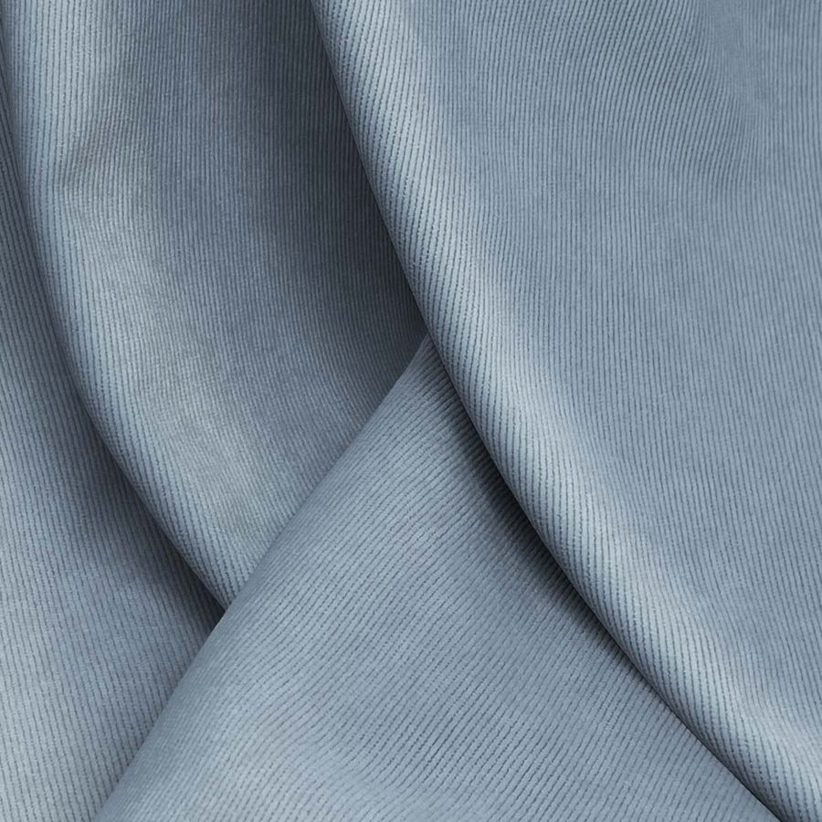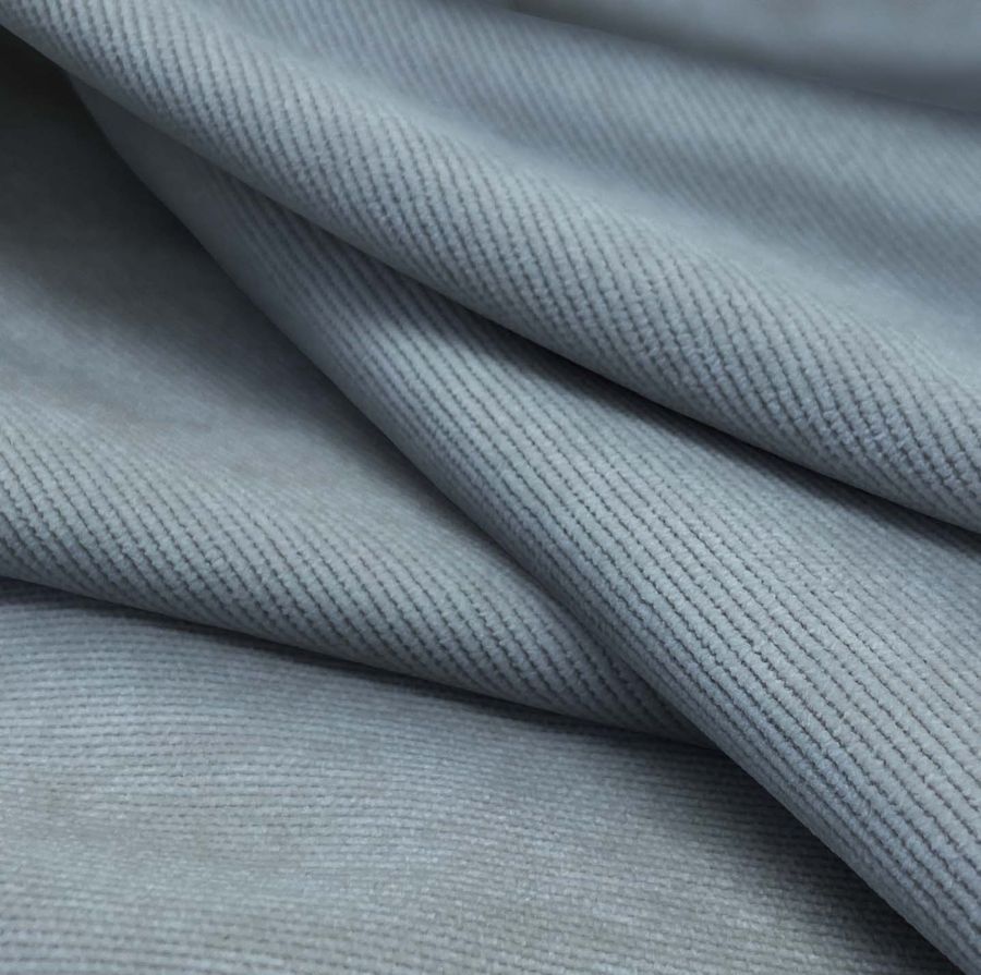 La tela base es Pana Aterciopelada - Dublin, compuesta por un 85% de Poliéster, un 12% de Poliamida y un 3% de Elastano, con un gramaje de 280 gr/m2 y un ancho de 150 cm. Su color liso impreso es Gris Pizarra Luz, con un contenido de 57% de tinta cian, 38% de tinta magenta, 28% de tinta amarilla y 11% de tinta negra en su CMYK. Este color es bastante sobrio, pero no por eso carece de personalidad. Su tonalidad fría es ideal para crear ambientes elegantes y modernos. El gris pizarra luz combina muy bien con tonos claros y pasteles para crear una atmósfera suave y relajante. Pero también puede combinarse con colores más oscuros y vibrantes para crear contrastes potentes y audaces.