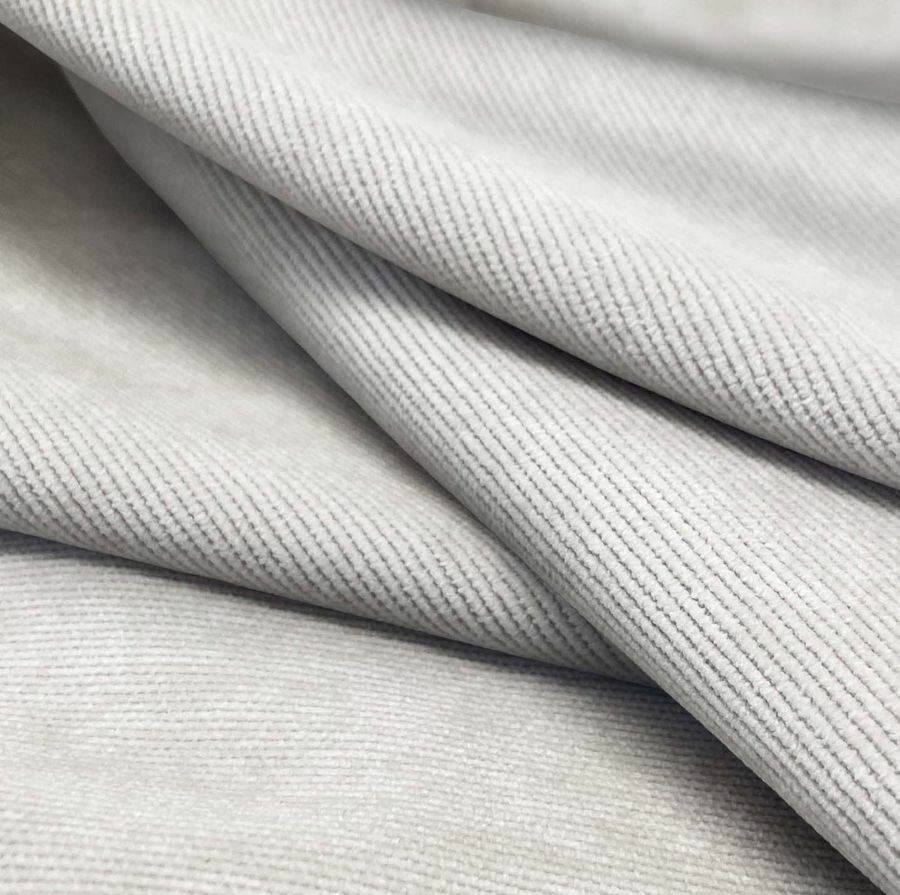 La tela base de la Pana Aterciopelada - Dublin es suave y brillante en su textura visual, lo que la hace adecuada tanto para su uso en la moda como en la decoración. El color liso impreso es brillante, pero a la vez sutil y elegante, lo que lo hace ideal para la confección de prendas y accesorios de moda. En cuanto a la combinación de colores, el gris humo blanco se destaca cuando se combina con colores cálidos como rojos, amarillos y naranjas.