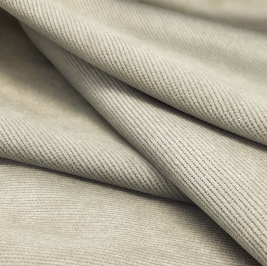 La tela base de este tejido es Pana Aterciopelada - Dublin, compuesta principalmente por poliéster, poliamida y elastano. Su gramaje es de 280 gr/m2 y su ancho es de 150 cm. El color liso impreso es Gris Lino, con un CMYK de 19 15 31 1. Este color combina perfectamente con otros tonos neutros, como el beige, el marrón o el blanco, generando un efecto elegante y sutil.