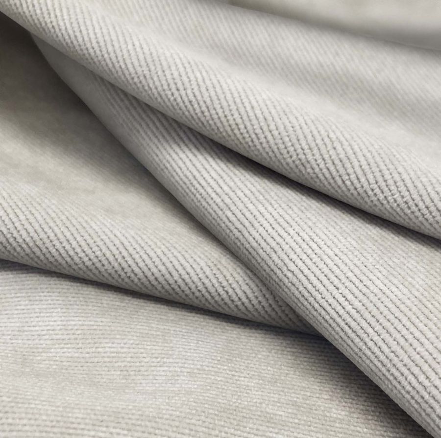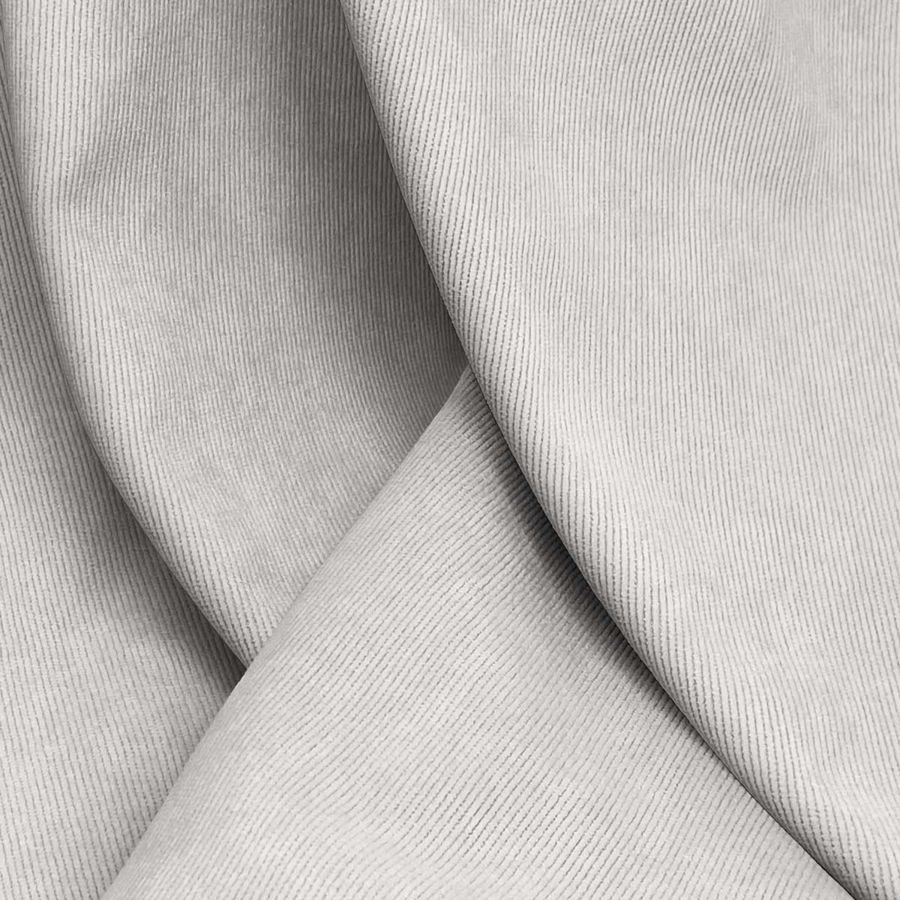La tela base es la Pana Aterciopelada - Dublin, con una composición de 85% poliéster, 12% poliamida y 3% elastano, un gramaje de 280 gr/m2 y una anchura de 150 cm. El color liso impreso es el gris lobo estepario, con un CMYK de 16 14 17 0, que se caracteriza por su elegancia y sobriedad. Este color transmite la sensación de estabilidad, seguridad y madurez, combinando la calma del gris con la fuerza del lobo estepario. Es fácilmente combinable con otros colores neutros, como el blanco o el negro, así como con tonos más atrevidos, como el verde oliva o el rojo.