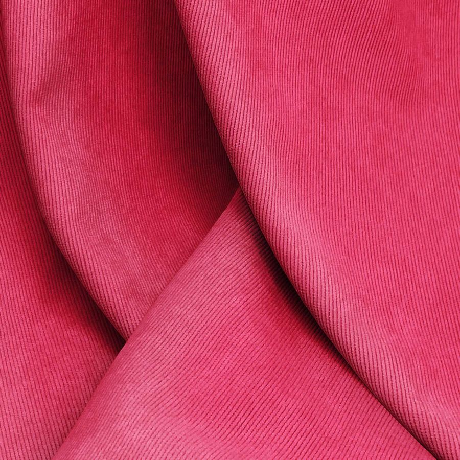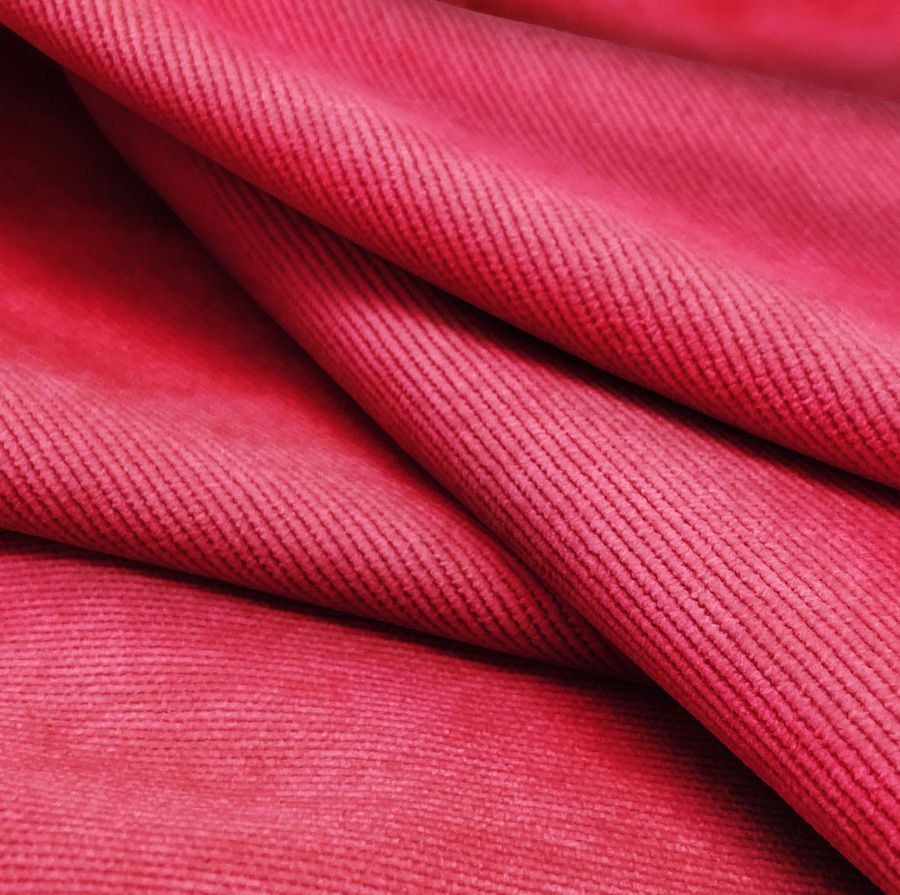 La tela base de esta descripción es la Pana Aterciopelada - Dublin, compuesta por un 85% de poliéster, un 12% de poliamida y un 3% de elastano, con un gramaje de 280 gr/m2 y un ancho de 150 cm. El color liso impreso es un rojo amaranto, que presenta un contenido de CMYK en tinta cyan del 5%, en tinta magenta del 96%, en tinta yellow del 73% y en tinta black del 1%. Este color es cálido, intenso y vibrante, con un toque de personalidad y sofisticación. Combina especialmente bien con tonos neutros, como el blanco, el gris, el negro y el beige.