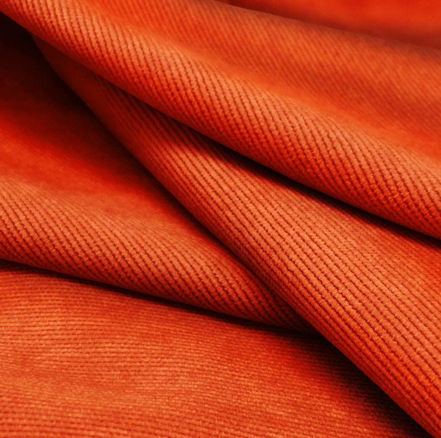 La tela base de este tejido es la Pana Aterciopelada - Dublin, con una composición de 85% poliéster, 12% poliamida y 3% elastano. Su gramaje es de 280 gr/m2 y su ancho es de 150 cm. En cuanto al color impreso de este tejido, se trata de un rojo bermellón con un valor de tinta magenta de 91 y tinta amarilla de 100, según el CMYK.