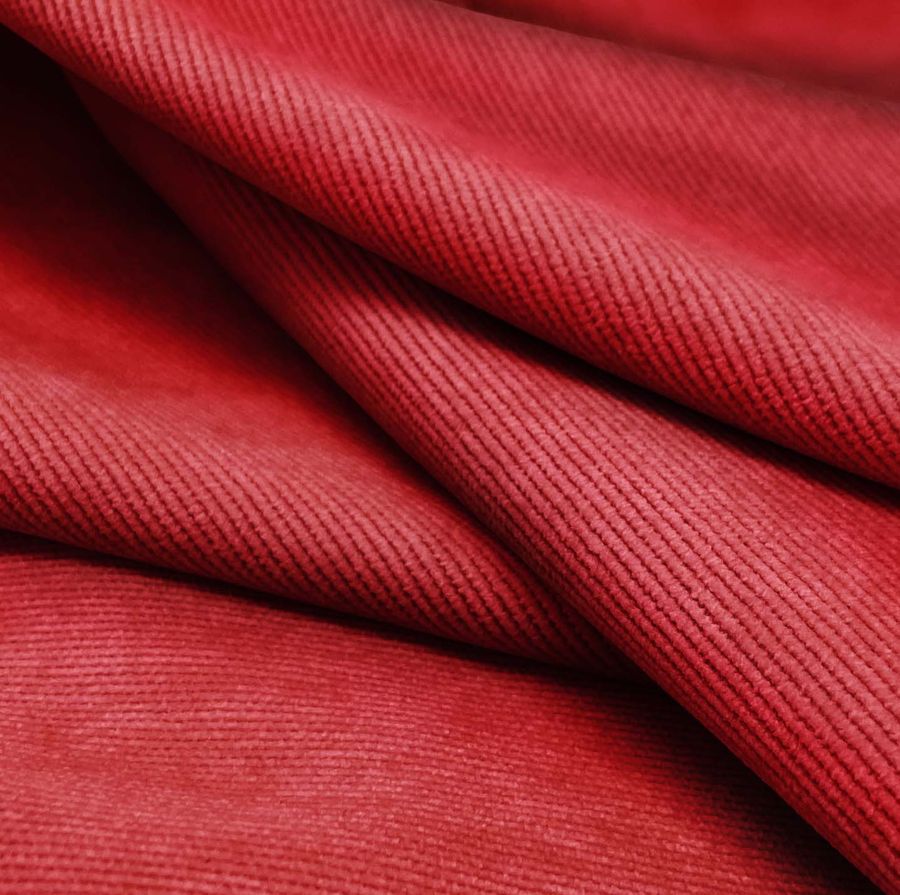 La tela base de Pana Aterciopelada - Dublin tiene una composición de 85% de poliéster, 12% de poliamida y 3% de elastano, con un gramaje de 280 gr/m2 y un ancho de 150 cm. Su color liso impreso es un vibrante Rojo Bermellón de China, que se logra gracias a la tecnología de impresión por sublimación en la que se utilizan las tintas Cyan (20), Magenta (99), Yellow (85) y Black (13), resultando en un perfil CMYK de 20 99 85 13. La tela presenta una textura suave y un brillo visual que resalta aún más este tono intenso. Además, el color Bermellón de China combina armoniosamente con tonos tierra y verdes, pero también puede ser contrastado con colores fríos para crear un look más llamativo y audaz. Cabe destacar que la tela está impresa a una sola cara por impresión digital textil, lo que asegura una definición nítida y precisa del diseño.