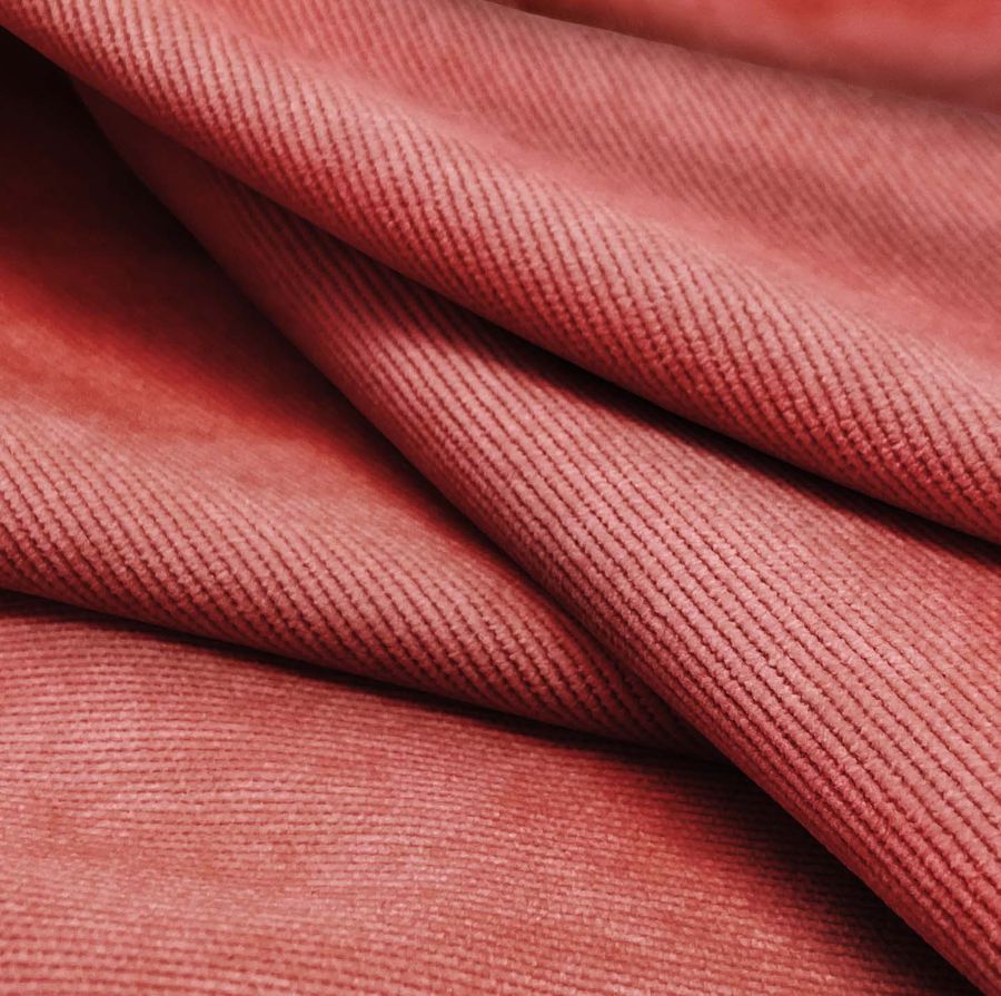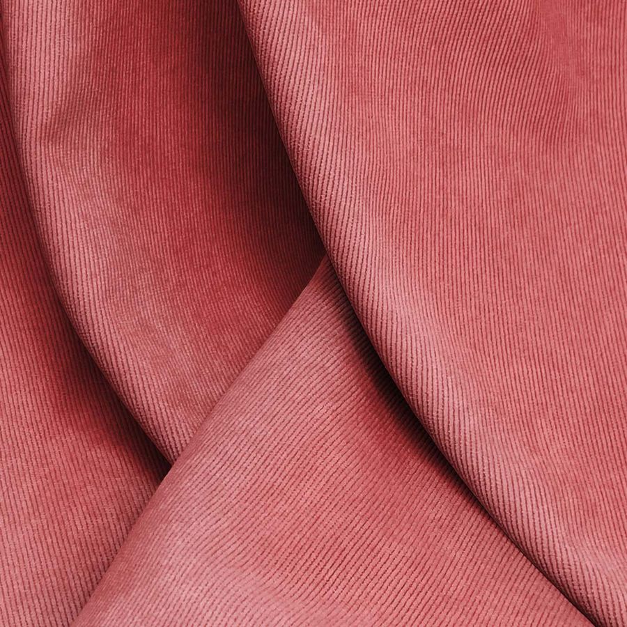 La Pana Aterciopelada - Dublin es una tela de composición 85% poliéster, 12% poliamida y 3% elastano, con 280 gr/m2 de gramaje y un ancho de 150 cm. Su color base es liso y de un rojo intenso, con un destello agridulce que se obtiene a través de una combinación de tinta cyan, magenta, yellow y negro (CMYK: 19 78 60 8). Este color secundario es único y sorprendente, aportando una gran intensidad y viveza al tejido. Además, debido a su combinación de colores, se combina perfectamente con tonos neutros y tierras, lo que lo convierte en un color muy versátil.
