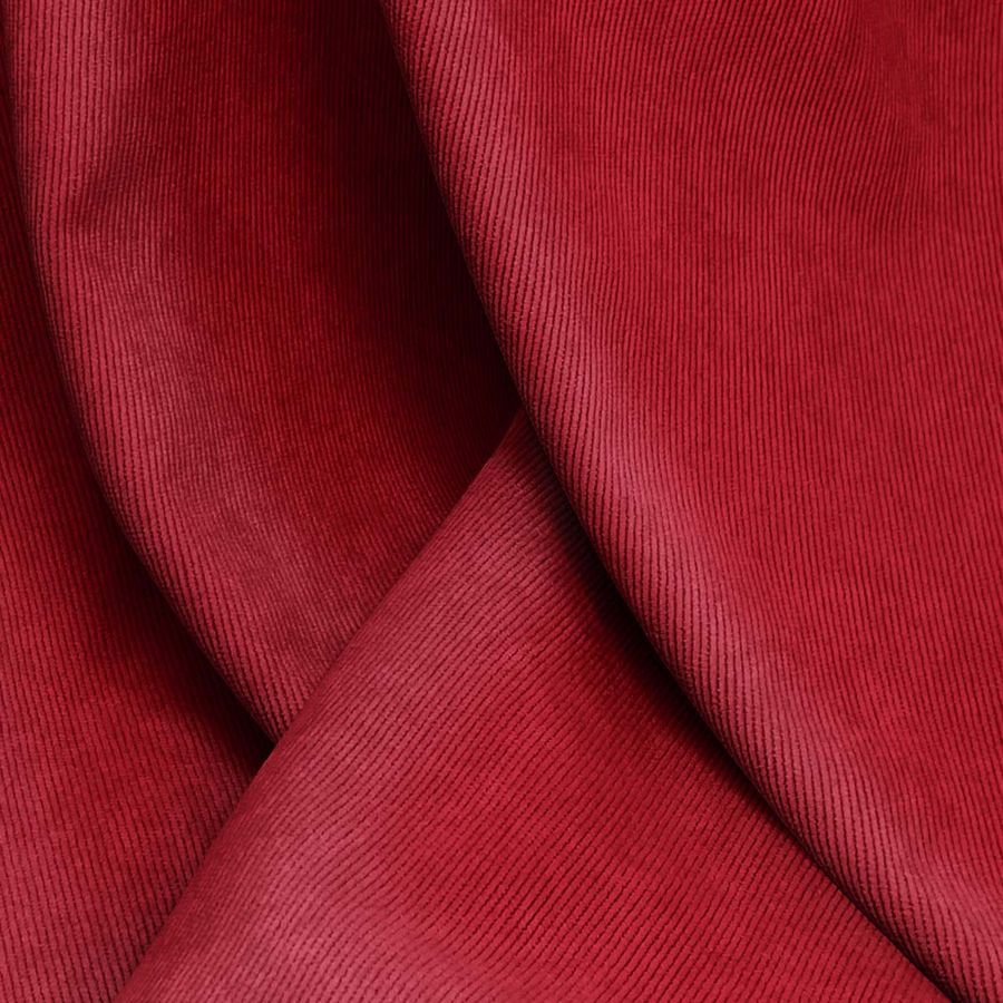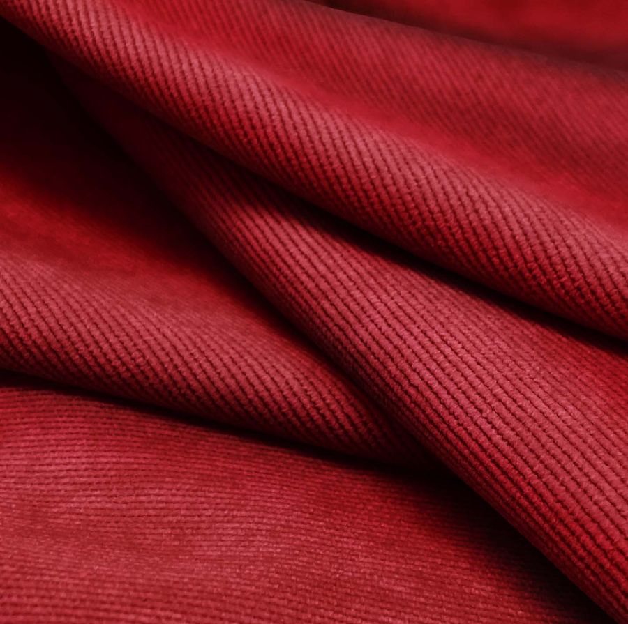 La tela base es la Pana Aterciopelada - Dublin con una composición del 85% de poliéster, 12% poliamida y 3% elastano. El color liso impreso es rojo diablo, con un CMYK de 28 100 94 36. El color rojo simboliza la pasión y el amor, mientras que el diablo representa la fuerza y la energía. Este color combina bien con tonos neutros como el blanco y el negro, así como con tonos dorados y plateados para un contraste elegante. Cabe destacar que la tela está impresa a una sola cara mediante impresión digital textil.