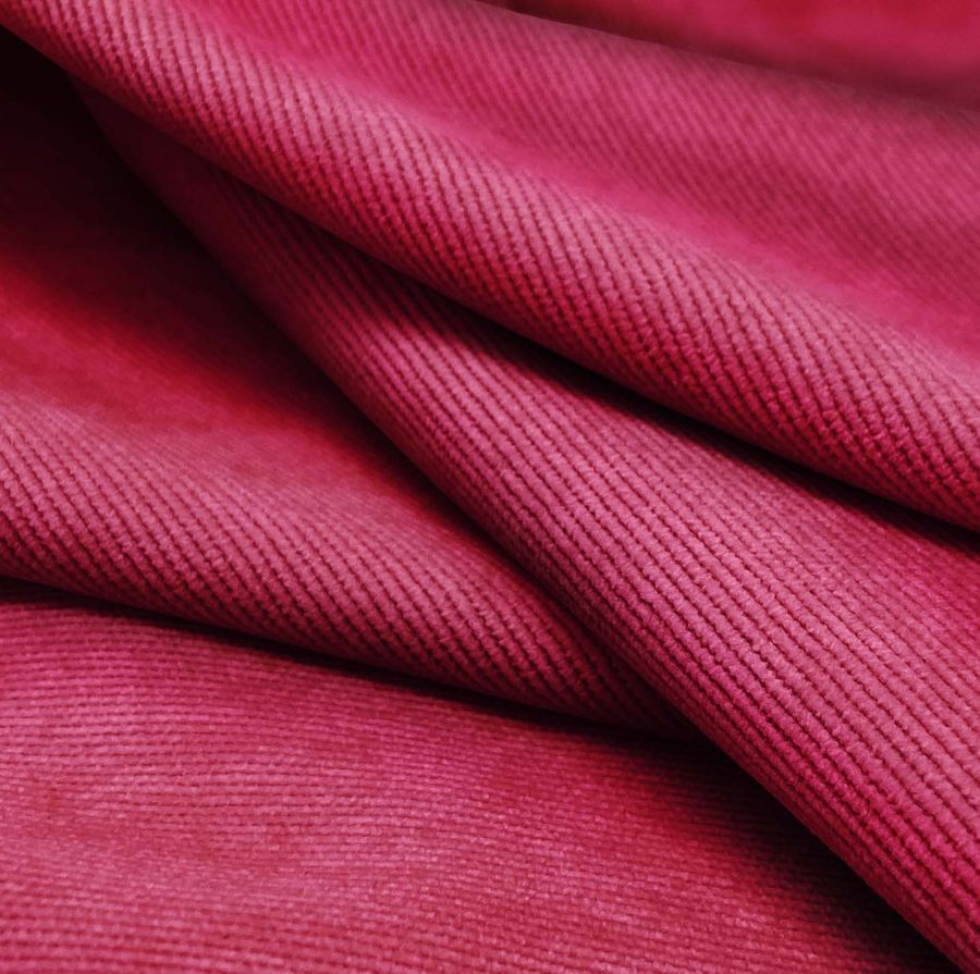 La tela base es la Pana Aterciopelada - Dublin, compuesta por un 85% de poliéster, un 12% de poliamida y un 3% de elastano, con un gramaje de 280 gr/m2 y un ancho de 150 cm. El color impreso en la tela es rojo granate, con un porcentaje de 23 en tinta cyan, 98 en tinta magenta, 52 en tinta yellow y 17 en tinta black, lo que se traduce en un CMYK de 23 98 52 17. Este color se caracteriza por ser profundo, intenso y con un toque de elegancia. Su simbolismo evoca la pasión, el amor, el poder y la sensualidad. Este color combina perfectamente con los tonos oscuros como el negro, azul marino o gris, pero también con tonos claros como el beige o el blanco.