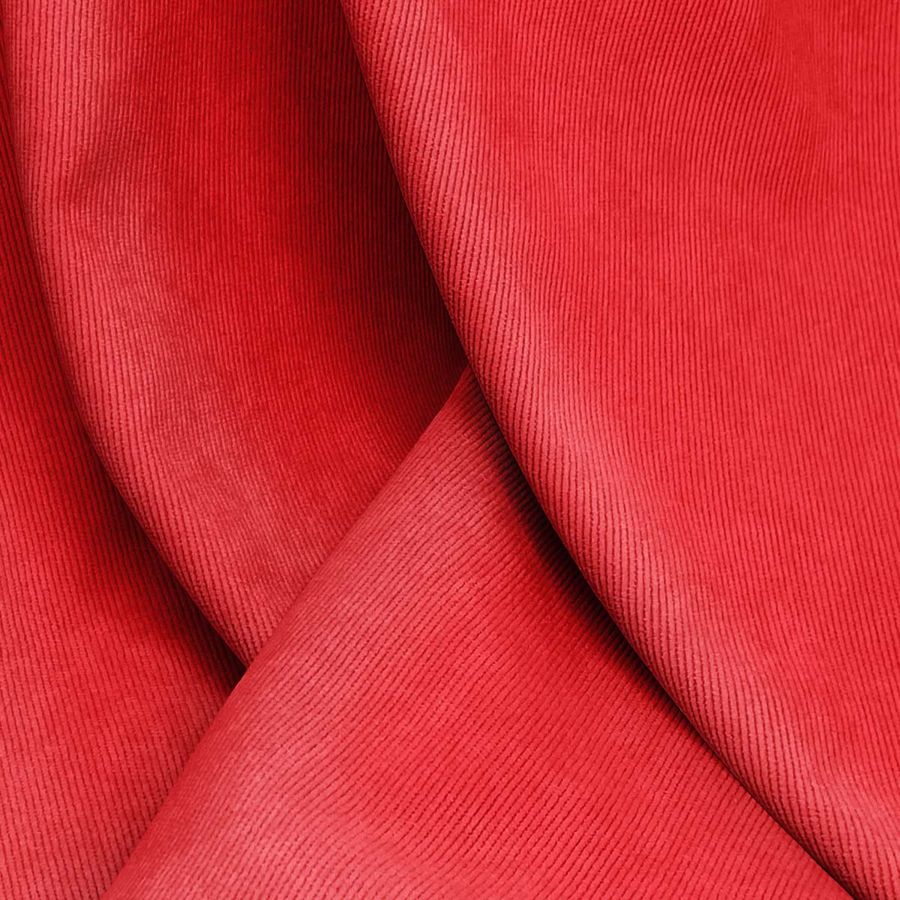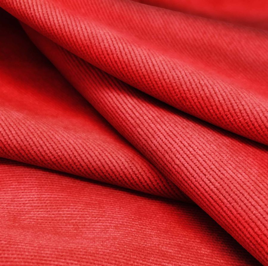 La tela base, Pana Aterciopelada - Dublin, está compuesta por un 85% de poliéster, un 12% de poliamida y un 3% de elastano con un gramaje de 280 gr/m2 y ancho de 150 cm. Su color liso impreso es rojo pigmento, con el CMYK: 0 95 85 0. Este color secundario destaca por su intensidad y elegancia, su coloración magenta y amarilla le otorgan un tono cálido y vibrante que se puede combinar perfectamente con blanco, negro o tonos marrones y grises.