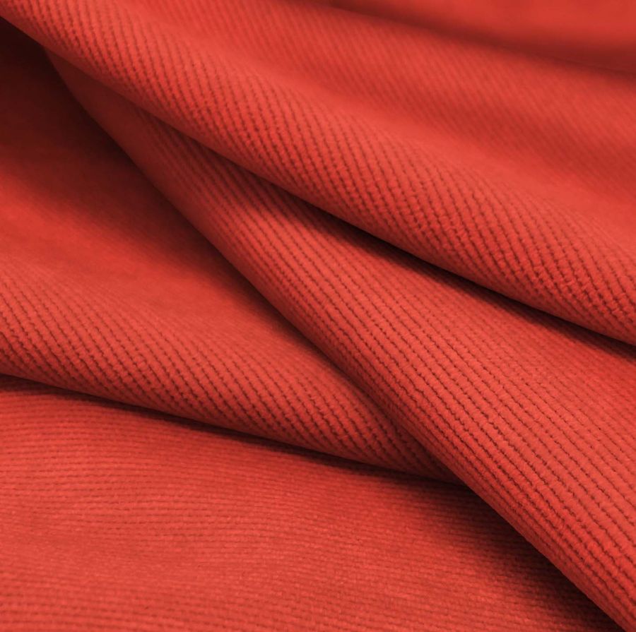 La tela base, Pana Aterciopelada - Dublin, es una pana con una composición de 85% poliéster, 12% poliamida y 3% elastano, con un gramaje de 280 gr/m2 y un ancho de 150 cm. El color liso impreso en la tela es un rojo intenso con un CMYK de 5 87 82 0, denominado rojo CG. El rojo CG es un color simbólico de la pasión, la energía y el dinamismo, y técnicamente es un color intenso con gran poder de saturación.