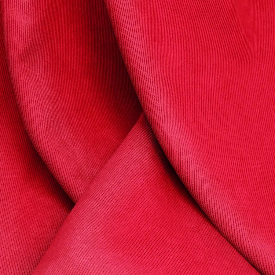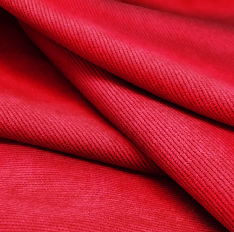 La tela base es la Pana Aterciopelada - Dublin, compuesta por 85% poliéster, 12% poliamida y 3% elastano, con un gramaje de 280 gr/m2 y un ancho de 150 cm. El color liso impreso es Rojo de Cadmio, con una combinación de tintas CMYK: 1, 100, 89, 0. Este color es intenso y vibrante, con matices anaranjados que le dan profundidad. Combina perfectamente con tonos neutros como el gris y el negro.
