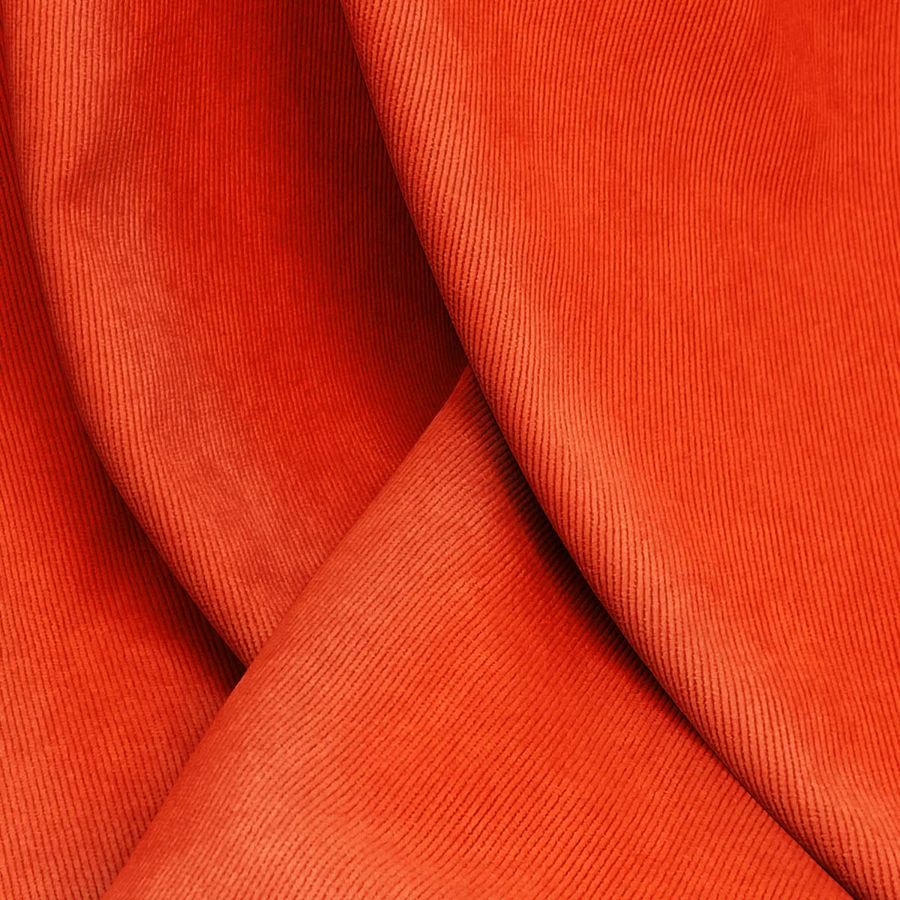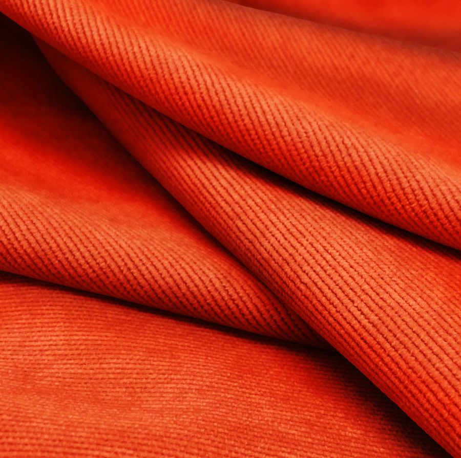 La tela base utilizada en este caso es la Pana Aterciopelada - Dublin, compuesta por un 85% de poliéster, un 12% de poliamida y un 3% de elastano, con un gramaje de 280 gramos por metro cuadrado y una anchura de 150 cm. El color impreso en esta tela es un vibrante rojo Ferrari, con una tinta magenta del 89% y una tinta amarilla del 93%, sin utilizar tinta cian ni tinta negra. Este color se caracteriza por su fuerza y vitalidad, ideal para ambientes alegres y sofisticados. Se trata de un tono que combina a la perfección con los colores negros, grises y blancos.