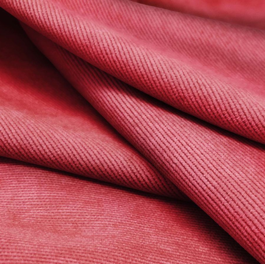 La tela base de nuestra referencia es la Pana Aterciopelada - Dublin, con una composición de 85% poliéster, 12% poliamida y 3% elastano. Su gramaje es de 280 gr/m2 y su ancho de 150 cm. El color liso impreso es de un tono Rojo Ladrillo, con un CMYK de 15 85 55 4 y textura visual brillante. Este color secundario simboliza la pasión, la fuerza y la energía, debido a su tonalidad rojiza intensa.