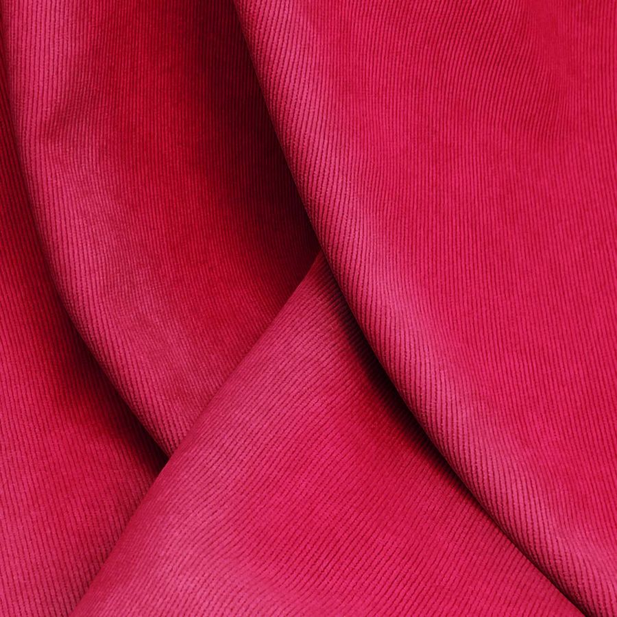 La tela base, Pana Aterciopelada - Dublin, está compuesta por un 85% de poliéster, un 12% de poliamida y un 3% de elastano, lo que la hace resistente y duradera. Tiene un gramaje de 280 gr/m2 y un ancho de 150 cm, lo que la convierte en una tela ideal para tapizar muebles, confeccionar prendas de moda, y para la decoración del hogar. El color liso impreso es un rojo fuerte con un toque de rojo NCS, que está representado en el CMYK como 15 100 74 6. La tinta roja es la predominante con una ligera mezcla de amarillo y negro. Este color secundario se trata de una tonalidad cálida y vibrante que combina perfectamente con otros tonos rojos y naranjas.